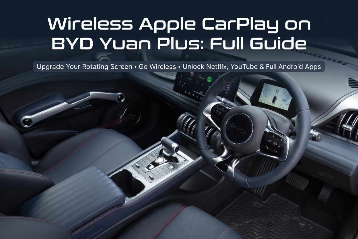 الخلاصة: تعتمد أفضل طريقة للحصول على Apple CarPlay لاسلكي في BYD Yuan Plus (Atto 3) على إصدار البرنامج الخاص بك. الطرازات التي تعمل بنظام v1.3+ تدعم بالفعل CarPlay اللاسلكي الأصلي - فقط قم بتمكينه من الإعدادات. أما إذا كنت تستخدم v1.2 أو ترغب في فتح تطبيقات Netflix و YouTube و Android Auto في وقت واحد، فإن صندوق AI Box اللاسلكي المخصص لسيارات BYD هو الترقية النهائية.